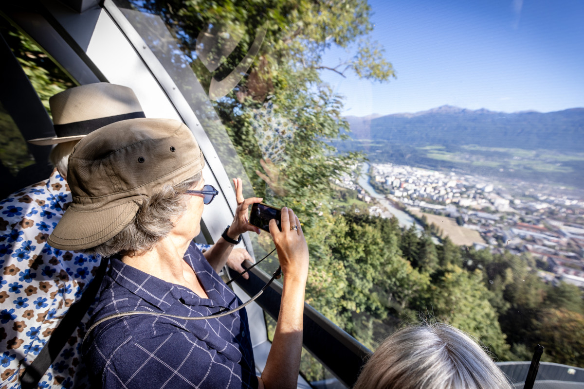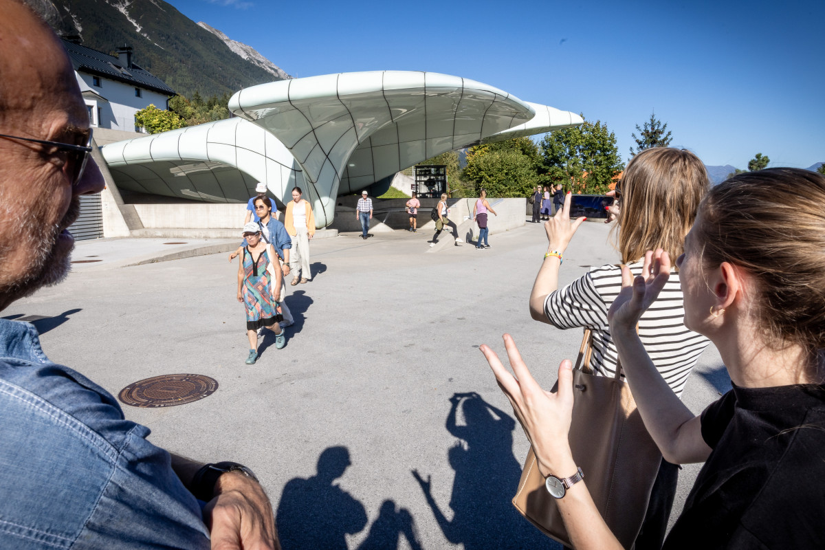 Zum Abschluss ging’s hoch hinaus – mit der Nordkettenbahn zur Station Hungerburg. Die von Zaha Hadid entworfene Bahn und besonders die Haltestellen sind architektonische Meisterwerke, die an Gletschereis erinnern. Bei Weißbier und Cappuccino genossen wir den Blick und das Traumwetter – und ließen zwei sehr inspirierende Tage in netter Runde ausklingen.