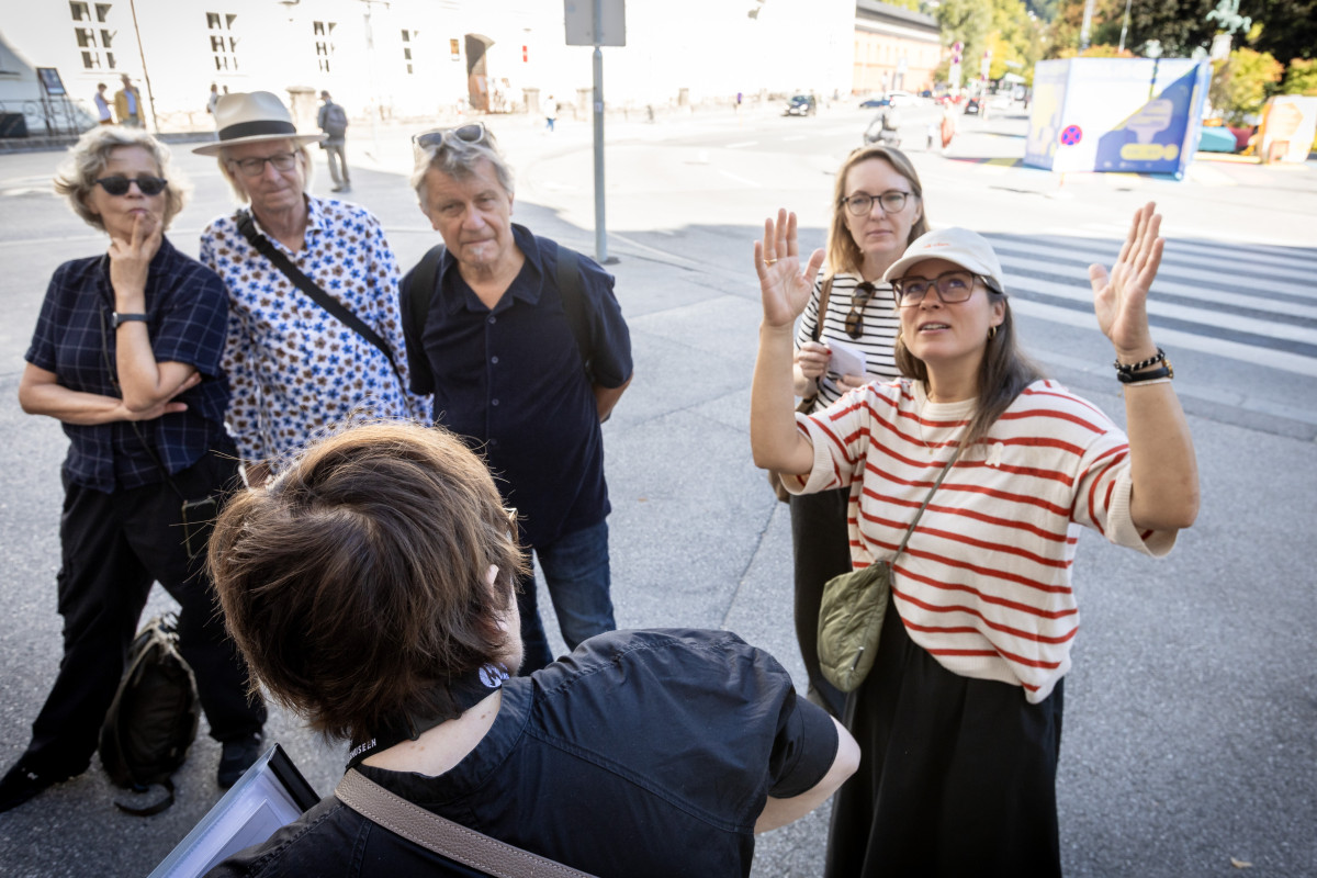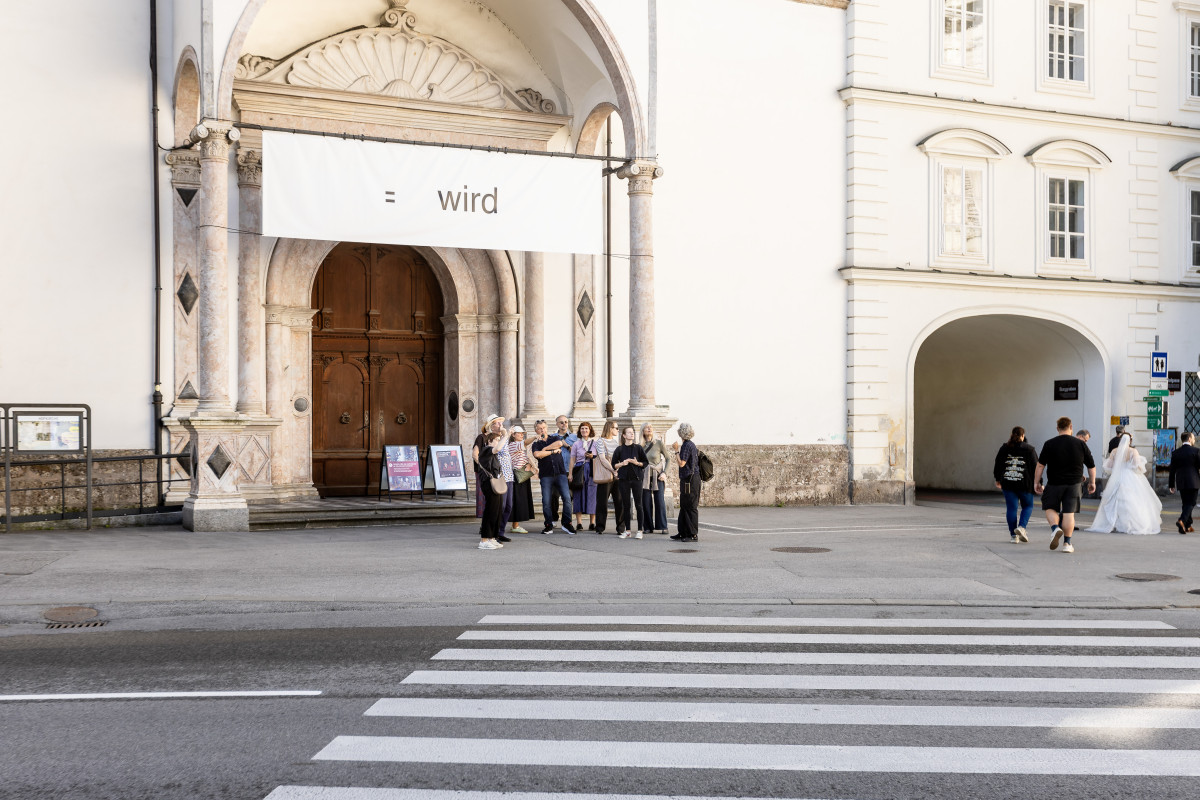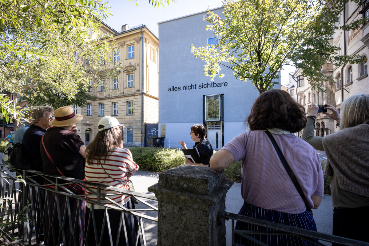Nach einem grandiosen Frühstück im stylishen Hotel Nala trafen wir Gaby Gappmayr, Tochter des Innsbrucker Konzeptkünstlers Heinz Gappmayr. Anlässlich seines 100. Geburtstags widmet ihm die Stadt eine Ausstellung im öffentlichen Raum. Gaby führte uns mit viel Herzblut zu mehreren Stationen – eine poetische Reise durch Buchstaben, Zahlen und Zeichen.