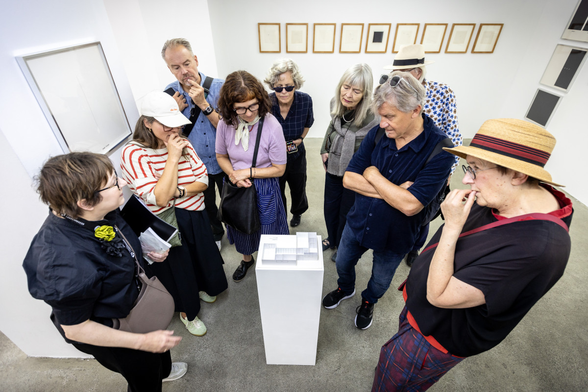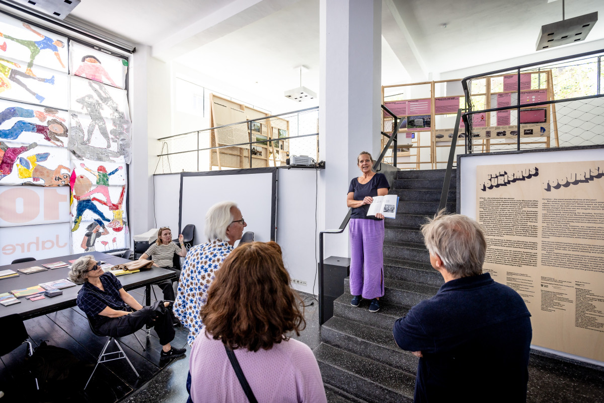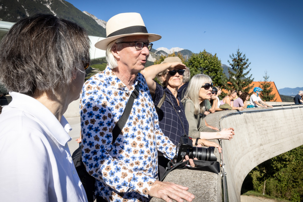 Das Tiroler Architekturzentrum befindet sich in den beeindruckenden Produktionsräumen einer ehemaligen Brauerei. Dort erwartete uns Claudia Wedeking mit einer Einführung in die Ausstellung »Über Tourismus«. Die Schau hinterfragt kritisch, wie Tourismus (bzw. Übertourismus) Landschaft, Architektur und Gesellschaft beeinflusst, mit welchen Auswirkungen des Klimawandels zu rechnen ist und welche umweltfreundlichen Alternativen es gibt. Die Ausstellung hat mich nachdrücklich zum Nachdenken über mein eigenes Reiseverhalten angeregt.