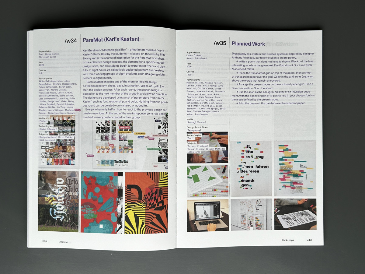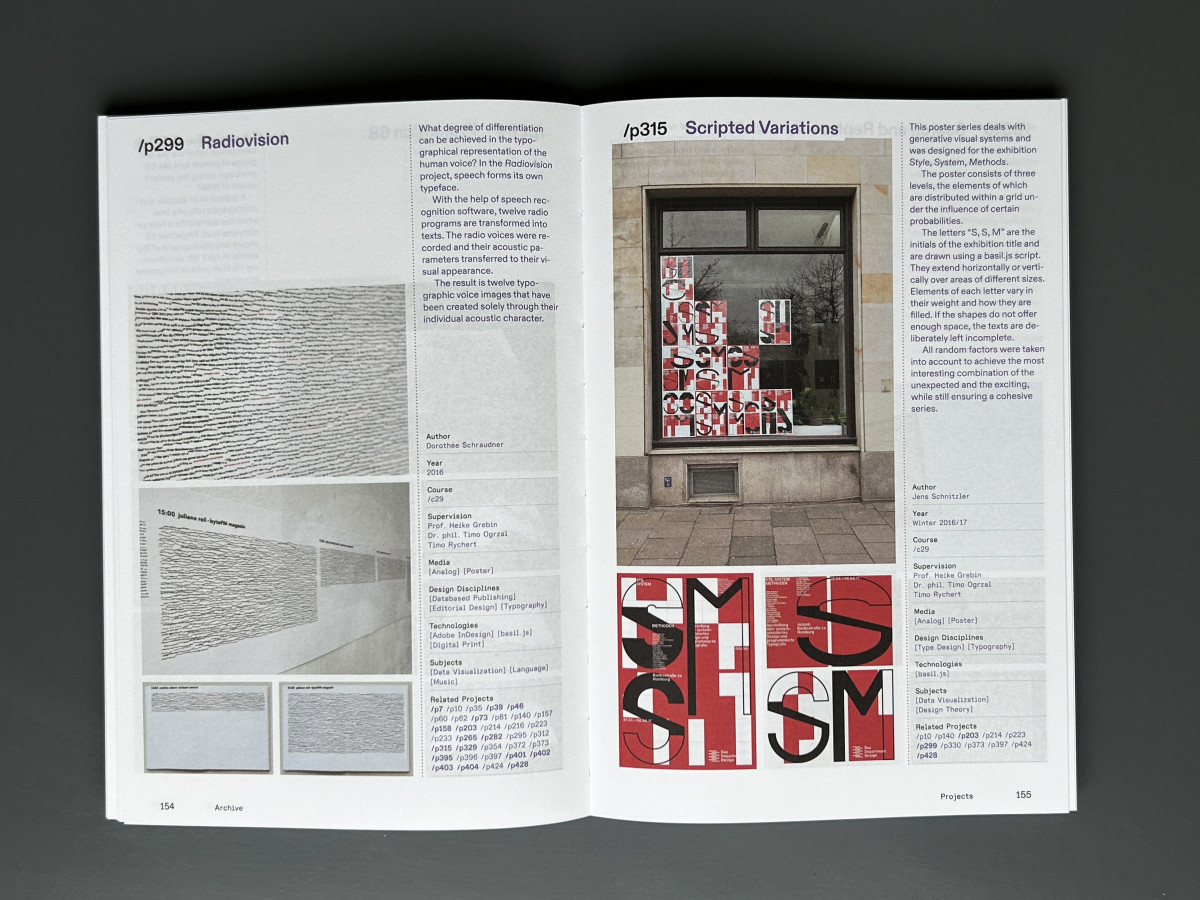 Der Hauptteil des Buches umfasst die Darstellung und Beschreibung von »parametrisch« gestalteten Projekten, die an der HAW entstanden sind. Dabei wird deutlich, so verschieden die Arbeiten auch sein mögen, es geht immer auch um Systeme in der jeweiligen Gestaltung. Wobei das vor allem bei Büchern naheliegt, denn Textbücher sind ja bereits Systeme.