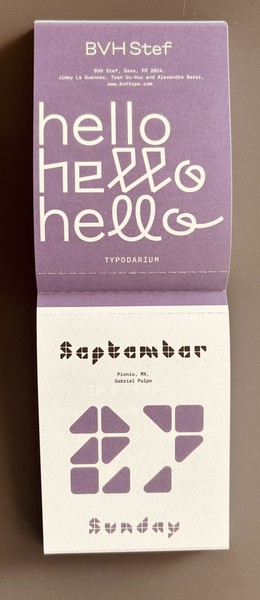 Zwei nette Objekte für Gestalter zeigen spielerische Möglichkeiten und informieren ein wenig; allerdings eher am Rande. Typodarium ist ein bereits erfolgreicher Tageskalender in Form der früher oft mit krampfhaft gesammelten Sprüchen etwas zwanghaften Abreißkalender.