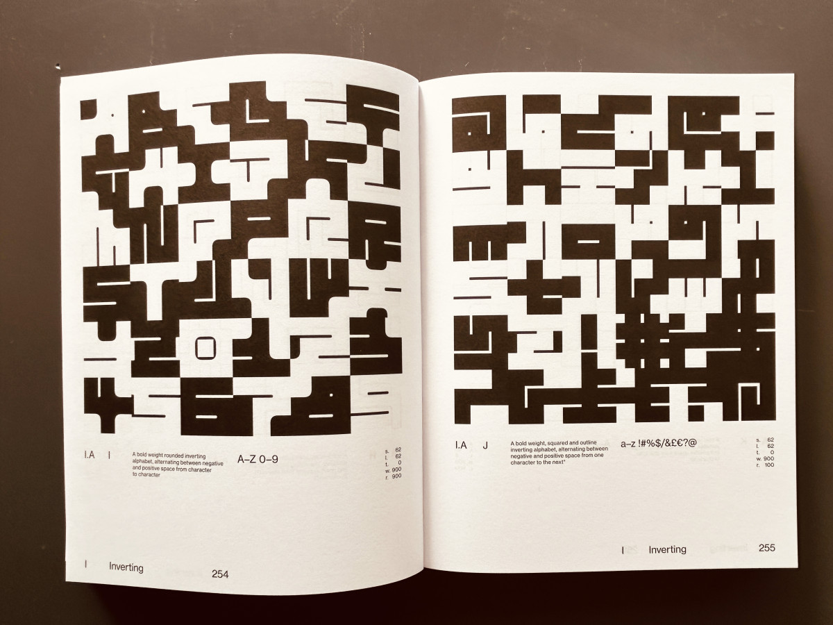 In der Anreihung von Schriftzeichen entstehen Bilder, neue Bilder, Systemeindrücke oder Ornamente. Nigel Cottier hat damit ein systematisch sortiertes Buch aufgebaut: Auf fast 700 Seiten sind die Beispiele alphabetisch nach Stichpunkten sortiert. Die Stichpunkte benutzen zunächst das Alphabet (könnten natürlich auch in sachlicher Reihenfolge auftreten). So stehen unter C Cursive, H Horizontal, M Matrix, P Phonetic, um nur einige Stichpunkte zu nennen. Und wer sich mit dem Experiment in Schrift und Gestaltung befasst, kann sein Vergnügen an diesem Buch finden.