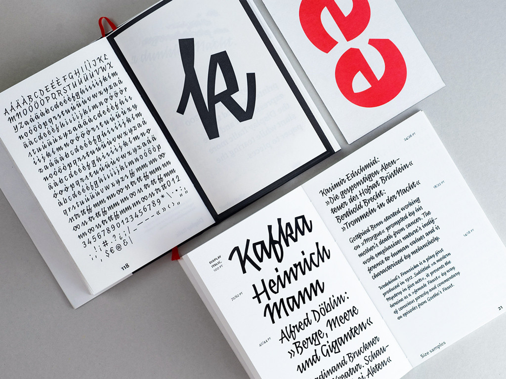 Diese materialbasierte Haltung wurde in ihrem Masterprojekt Kaligari an der KABK Den Haag zur Systematik. Die Kursive verbindet Sans und Serif nicht stilistisch, sondern konzeptionell – inspiriert vom expressionistischen Holzschnitt, von der Spur des Werkzeugs. So entsteht eine »Werkzeugkiste« harmonierender Stile.